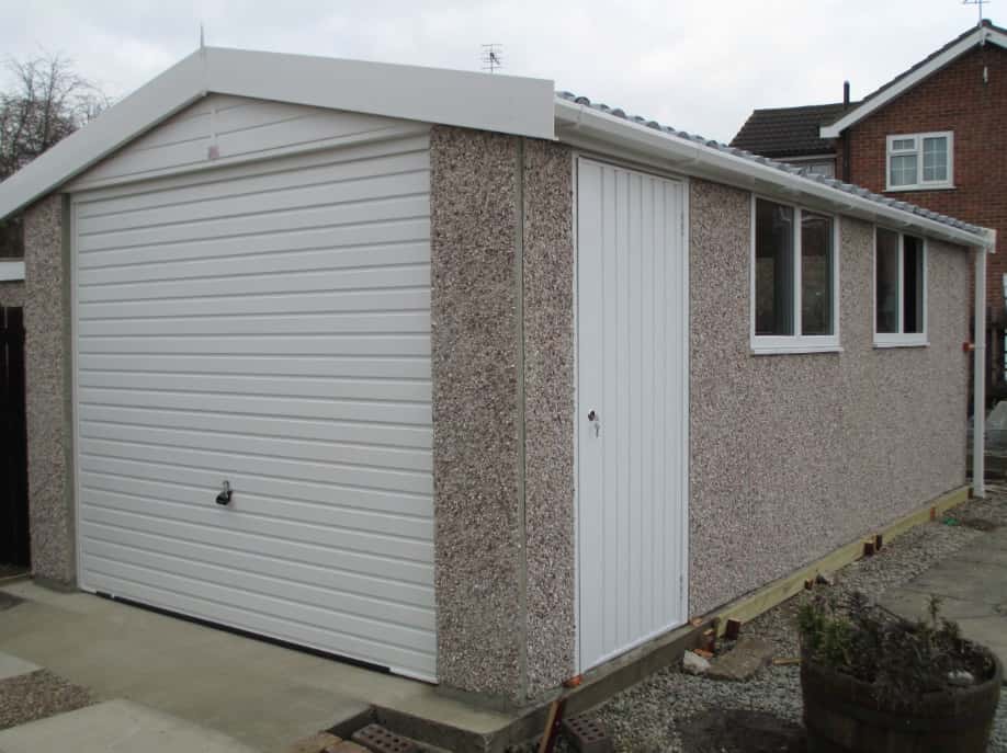 Canterbury Spar: All of our pent roof garages and apex roof garages come in our Canterbury Spar Finish as standard and provide a very durable and weatherproof surface due to the aggregate material used being extremely robust. If you want to have a more distinguished design we can provide a variety of additional spar finishes including White Spar, Derbyshire Spar and Yellow Spar.